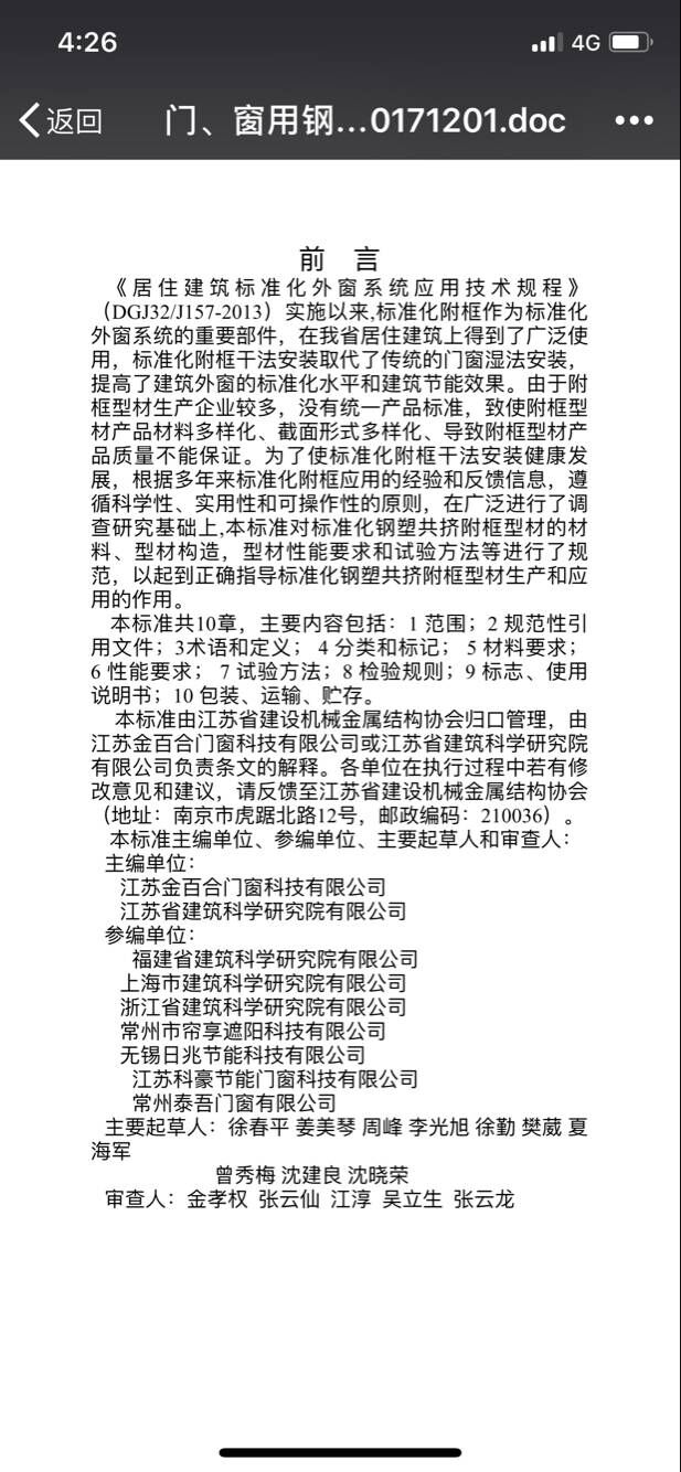 附框標(biāo)準(zhǔn)、副框參編、鋼塑共擠附框、簾享遮陽(yáng)、日兆節(jié)能,常州市簾享遮陽(yáng)科技有限公司、無(wú)錫日兆節(jié)能科技有限公司共同參與了江蘇省鋼塑共擠門(mén)窗附框(副框)標(biāo)準(zhǔn)的標(biāo)志過(guò)程,希望附框的運(yùn)用能給標(biāo)準(zhǔn)化門(mén)窗的大力實(shí)施增磚添瓦!